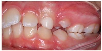 During the clinical examination, white/yellowish opacities were observed in the upper incisors and permanent upper first molars, and yellow/brown opacities with loss of structure were noted in the lower permanent first molars, characterizing MIH with a loss of the vertical dimension of occlusion (Figure 2).