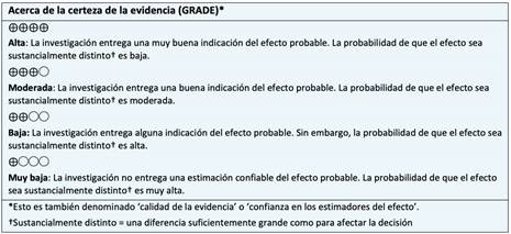 Se incluyeron los desenlaces reportados en las revisiones sistemáticas que fueron priorizados dada su relevancia clínica para los pacientes y tratantes, de acuerdo a la opinión de los autores de este resumen.