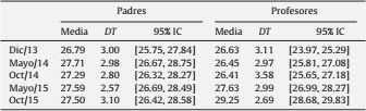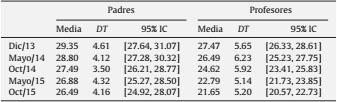 Correlations found between the scores of parents and teachers in both dimensions in the five time measures reveal low degree of agreement between the two types of informants. These results are in line with other studies on behavioral and emotional problems in childhood, according to which the degree of consistency between the assessments made by parents and teachers is also very low (Berg-Nielsen, Solheim, Belsky, & Wichstrom, 2012; Cai, Kaiser, & Hancock, 2004; Harvey, Fischer, Weieneth, Hurwitz, & Sayer, 2013; Silverg, Tal-Jacobi, Levav, Brezner, & Razzovsky, 2015). This result could also be explained by the particular characteristics of each of the contexts in which the behaviors occur and, in particular, will depend on the consequences that may have children's behaviors at home or at school.