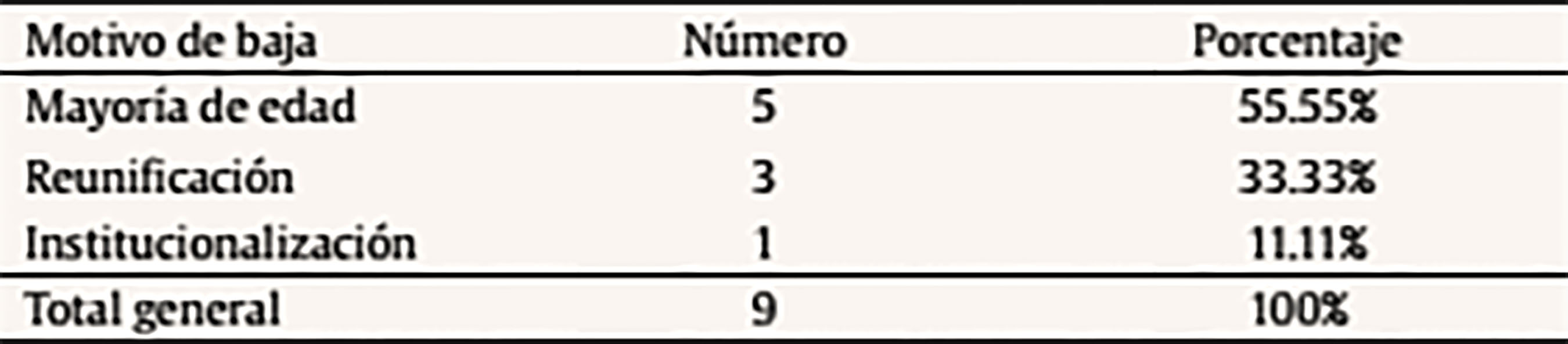 El siguiente motivo de baja es la reunificación familiar, lo que indica que las causas que motivaron el acogimiento ya no están presentes y los menores pueden residir de nuevo con sus padres. Por último, el ingreso en centros de protección supone uno de cada diez casos.