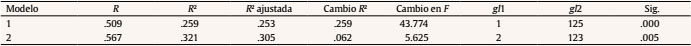Como se observa en la Tabla 3, la inteligencia explica un 25.9% del rendimiento matemático y la introducción de la motivación identificada y las prácticas informales añaden un 6.2% extra a la explicación de dichos resultados. Este aumento es significativo (p = .005).