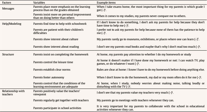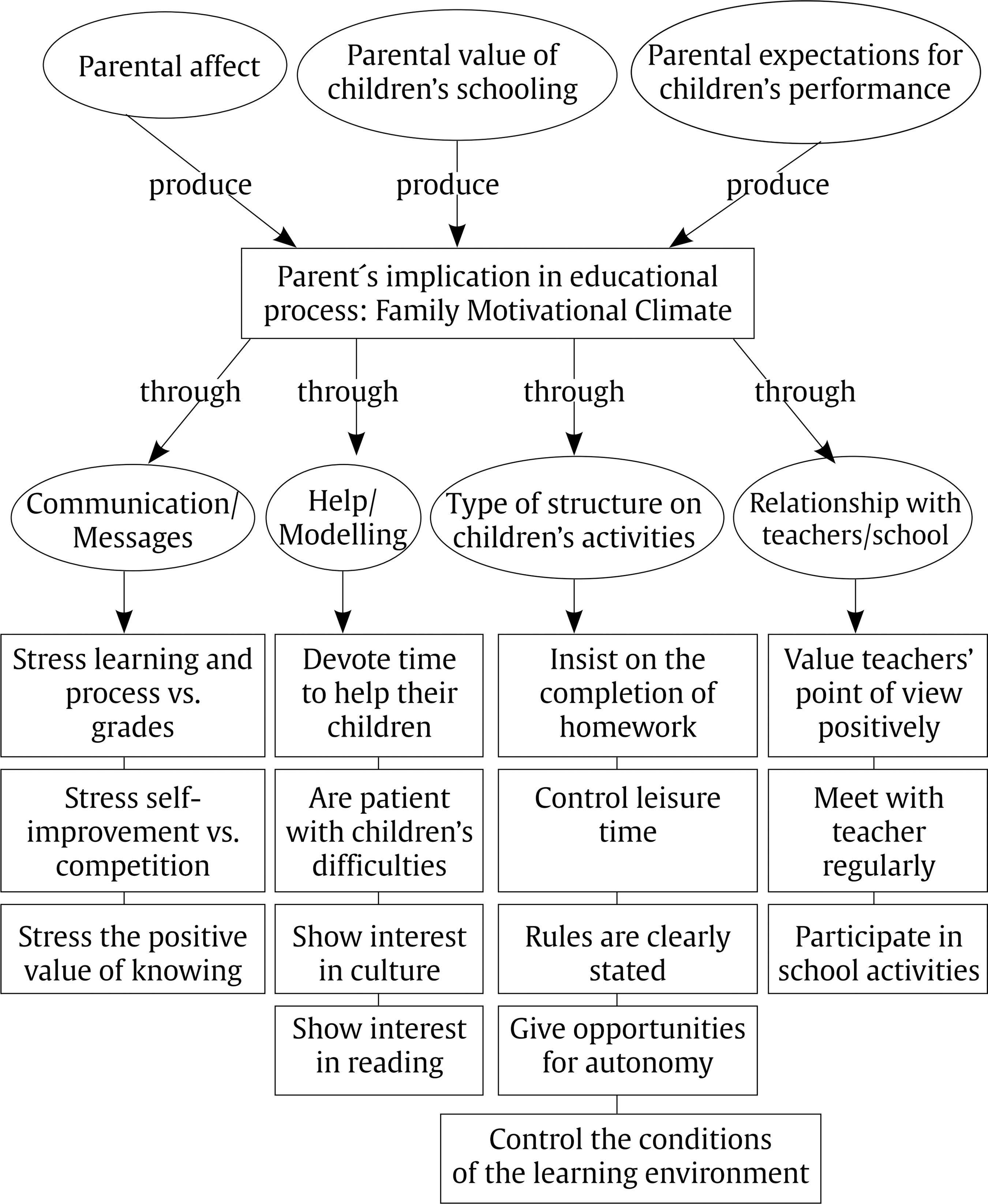 Several authors have shown that parental involvement – its degree and quality – has a deep influence on learning motivation and achievement (Boonk et al., 2018; Cheung et al., 2016; Jeynes, 2017; Madjar et al., 2016; Wilder, 2014). However, the meta-synthesis of parental involvement in academic achievement carried out by Wilder (2014) and Boonk et al.’s (2018) review of the relationship between parental involvement indicators and academic achievement have also shown that the positive effects of parental involvement depend on the specific characteristics of it, as relationships were not always found positive. Therefore, it is necessary to clarify the construct and to develop a measure that operationalize it in order to make the specific characteristics referred to in intervention studies clear.