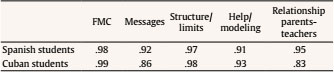 The model just described includes the main factors pointed out in studies of interventions of parental involvement. It was the base of the FMC model proposed and validated by Alonso-Tapia et al. (2013) in Spain. However, given the fact that differences in culture could be responsible of differences in its structure, it was decided to evaluate whether the model and the questionnaire were also valid in the Cuban cultural context. The reason for choosing this context was that the educational authorities in Cuba gave us the possibility of carrying out the study.