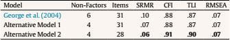 The existence of four factors with 28 items and not six factors with 31 items can be explained by the fact that the instrument proposed by George et al. (2004) was never analyzed psychometrically and that the six factors were established only in theoretical terms.
