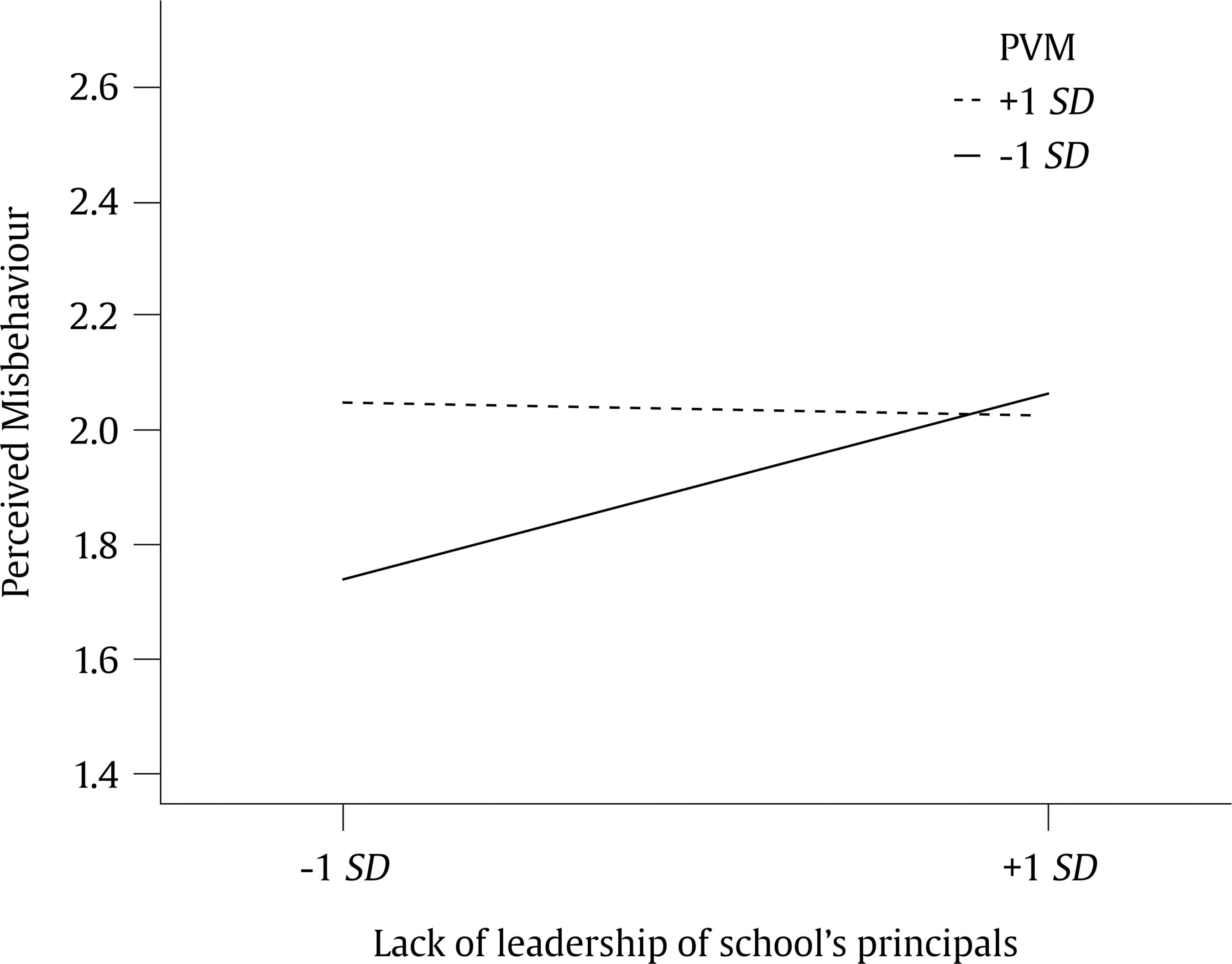 Moderating effects of pro-violence family messages. The results show that although a lack of leadership from school principals (based on teacher participation) enables misbehaviour to be directly predicted, this relationship disappears in centres whose students frequently receive pro-violence messages in their families, where high levels of disruption are observed regardless of said leadership. Teachers tend to describe something similar with regard to the difficulty of using the educational organisation to counteract the influence of family environments that convey messages contradicting what schools are attempting to teach. This again supports the conclusion reached by previous studies (OECD, 2014, 2016; Sheldon et al., 2002) regarding the need to develop distributed leadership. One of the main contributions of the present research from an ecological perspective is its identification in this respect of the need to intervene with families that are conveying pro-violence messages (such as if you are hit, hit back) in order to replace those messages with non-violent conflict resolution strategies and thereby improve the consistency of the two main educational microsystems. This kind of mesosystem-level intervention, previously proposed in the context of anti-bullying student programmes (Espelage et al., 2000), also appears necessary to prevent disruption-coercion escalations.