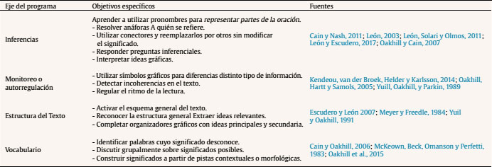 Keywords: Reading comprehension, Instructional program, Vocabulary, Inference making, Monitoring (self-regulation), Text structure, Spanish, Primary school.