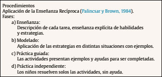 Sobre esta base teórica se han desarrollado e implementado varios programas de intervención para mejorar la comprensión lectora en niños y adolescentes, siendo la enseñanza recíproca el más documentado. La enseñanza recíproca (Palincsar y Brown, 1984) comprende la enseñanza explícita de cuatro estrategias básicas como predecir, aclarar, cuestionar y resumir. Los estudiantes colaboran en pequeños grupos y se construye una interacción recíproca entre el profesor y los alumnos dentro de los grupos. El efecto de este tipo de intervención ha sido ampliamente investigado en numerosos estudios, comprobándose resultados positivos dependiendo de las condiciones de la intervención y de las medidas de comprensión lectora recogidas (León y Carretero, 1995; Rosenshine y Meister, 1994). Otros programas de intervención se han basado en la enseñanza de estrategias transaccionales focalizando en los intercambios que se producen entre maestros, estudiantes y el texto, donde el discurso del maestro proporciona apoyo y orientación a los estudiantes mientras usan distintas estrategias para entender el texto. El significado que se deriva del texto está determinado por la construcción conjunta creada por los alumnos y el maestro. Se piensa que la participación a largo plazo en este tipo de entorno conduce a la internalización de las estrategias utilizadas en el grupo. Este enfoque ha tenido resultados positivos a mediano y a largo plazo (Pressley, Graham y Harris, 2006). Por último, la enseñanza de la lectura orientada al concepto (Concept Oriented Reading Instruction, CORI) se centra en estimular la motivación de la lectura y el compromiso. En este programa, los procesos motivacionales y las estrategias cognitivas ocurren simultáneamente. La eficacia de este tipo de programa ha sido comprobada, pero se han encontrado diferencias en cuanto al impacto en la motivación (Guthrie, McRae y Klauda, 2007). Otros estudios, en cambio, optaron por comparar la modalidad de trabajo oral, escrito o combinado, obteniendo mayores resultados en programas de mejora de la comprensión lectora centrados en el trabajo oral en las aulas (Clarke, Snowling, Truelove y Hulme, 2010). En esta línea, van den Broek et al. (2005) demostraron que las preguntas dirigidas a establecer relaciones causales en el texto resultan más eficaces para mejorar la comprensión lectora que las preguntas generales. Por otro lado, McKeown, Beck y Blake (2009) compararon los efectos de una intervención centrada en la comprensión de los contenidos implicados en el texto frente a una intervención basada en la enseñanza de estrategias. Las autoras encontraron que el enfoque de procesamiento de texto era más efectivo, señalando, sin embargo, que el impacto dependía del nivel de lectura inicial de los estudiantes.