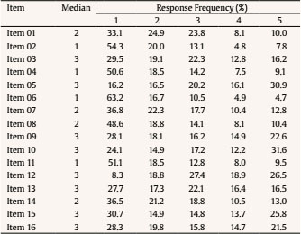 Prior to CFA, descriptive statistics were calculated for the items (median for central tendency and frequencies for variability). The descriptive statistics for each CMAQ-R item are presented in Table 2.