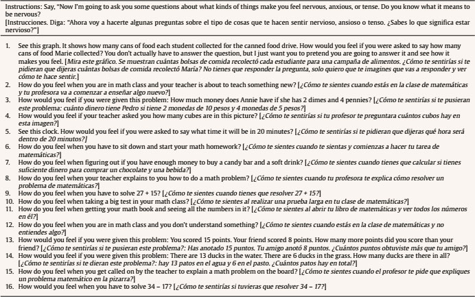 Keywords: Math anxiety, Mathematics, Spanish-speaking children, Rating scale, Emotion.