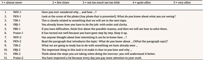 Teachers Motivational Knowledge Abbreviated Questionnaire (TMK-AQ). This questionnaire, developed for this study, is a short version of the TMK developed by Alonso-Tapia, Ruiz, et al., 2020. It has only one scale with 12 five-point Likert-type items, ranging from 1 (strongly disagree) to 5 (strongly agree). These items allow assessing the motivational importance that teachers give to a sample of teaching patterns that contribute to motivating students to learn (Alonso-Tapia & Fernández, 2008). A previous study by Garazo and Alonso-Tapia (2016) provided initial evidence about the adequacy of the structure. An initial version of this questionnaire had been validated by the Alonso-Tapia, Ruiz, et al. (2020). The study by Garazo (2016) tested the adequacy of a short version found to be of similar quality.