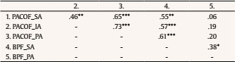 Table 2 presents the Pearson correlations between the PACOF sub-scales and the BPF sub-scales for the analysis of concurrent validity.