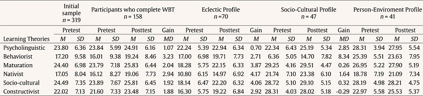 Do Belief Profiles Reveal Different Changes in Attribution Levels in each Learning Theory after the WBT?