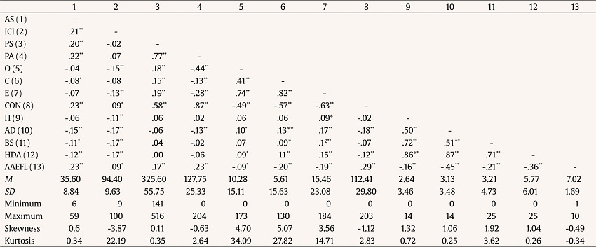 First, variables’ goodness of fit to the normal distribution was estimated using the Kolgomorov-Smirnov test, and the homoscedasticity test. After verifying that most of the variables did meet the normality principle, we opted for parametric statistical tests. Descriptive statistics, Pearson bivariate correlations, and an analysis of variance (ANOVA) were carried out, taking academic achievement in EFL as the independent variable, and variables linked to executive functioning as dependent variables. In order to measure effect size, the partial eta-squared coefficient was used (ηp2), considering a small effect when ηp2 ≥ .01, medium if ηp2 ≥ .059, and large if ηp2 ≥ .138. On the other hand, post hoc contrasts were performed, applying the Bonferroni correction, with a significance value of .05 in cases where significant between-group differences were documented.
