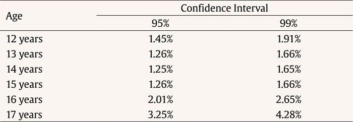 On the other hand, the analyses carried out make it possible to establish 15 percentiles, both for self-confidence and self-depreciation, by age and sex, thus being possible to establish an updated standardization of the levels of self-esteem expected among Spanish adolescents.