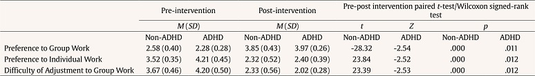Feelings toward Group Work: Differences in pre- and post- Intervention Answers of Non-ADHD Students