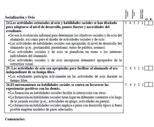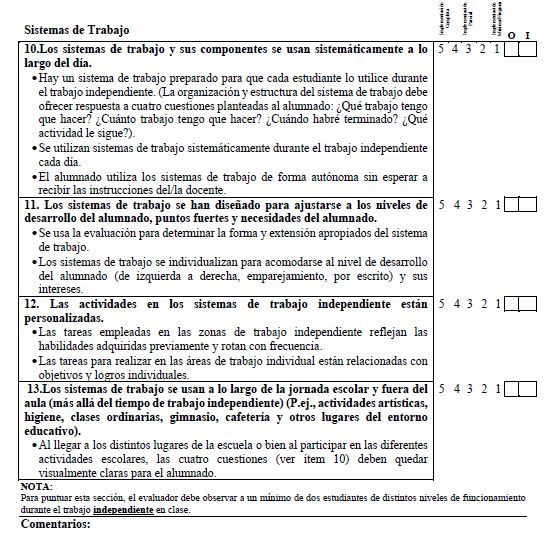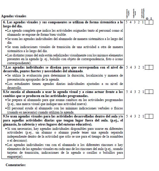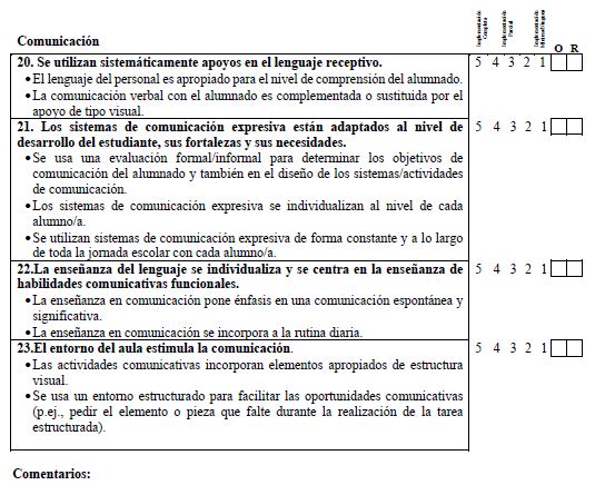 Along these lines, the TEACCH structured teaching program (Mesibov et al., 2005) provides a series of strategies and tools to carry out interventions in students with ASD and promote their inclusion through the access to a broader curriculum (Mesibov & Howley, 2010/2003). TEACCH is a comprehensive intervention program. According to the definition of the National Research Council, these programs consist of a series of strategies to improve the core symptoms of autism (Odom et al., 2010). However, several studies have questioned the effectiveness of these models. Virués-Ortega et al. (2013) underlined the need for empirical studies of the model components as well as adequate assessment instruments. In this regard, Hume et al. (2011) designed an instrument to measure each of the components of structured teaching and assess the validity and reliability of the implementation of the instrument since, as the authors state, “If the components of the treatment are not well measured, no definitive conclusions can be drawn regarding the effects of the independent variables on the outcome measures.” (p. 2).