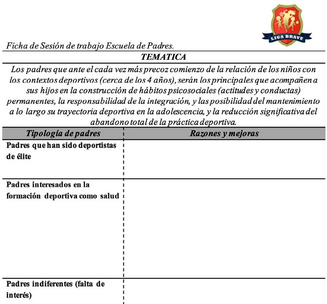 Generar el interés de los adultos por una implicación útil y saludable psicosocialmente (Hoover-Dempsey y Sandler, 1995; Merino Orozco, Arraiz y Sabirón, 2017) para que desde bien pronto los niños aprendan a entender los contextos sociales (deportivos, familiares, escolares,…), a detectar las claves que les digan cómo otros funcionan, lo que les gusta o disgusta, o lo que perpetuamos en las interacciones cotidianas con los hijos, son objetivos principales en las iniciativas con padres de Liga BRAVE. Esta experiencias, ponen el punto de mira en los padres como fuentes del proceso socializador, en su actuación directa e indirecta, en sus comportamientos reforzadores o sancionadores, estilos de crianza, lazos comunicativos y de relación afectiva o verbal (Capano y Ubach, 2013; Jiménez-Iglesias y Moreno, 2015; Rodrigo et al., 2004), incluso en las primeras preferencias de sus hijos en cuanto a gustos y deseos, de los que la práctica del deporte no será menos (Arthur-Banning, Wells, Baker, y Hegreness, 2009).