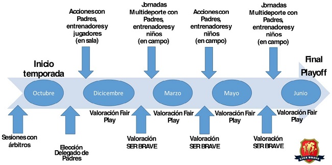 La Liga BRAVE, con la colaboración de equipos de fútbol base de la Vega Baja del Río Segura (Alicante, España), y promovido por su Área Psicoeducativa, ha diseñado y puesto en marcha un modelo diferente de competición en valores deportivos y el señalamiento (a través de recompensas, reducciones de refuerzos, propuestas psicoeducativas de prevención e intervención), una estructura y organización competitiva de la práctica del fútbol base, donde se desarrollen conductas deportivas en deportistas, padres y clubes de fútbol. Para ello, la colaboración y participación de padres y clubes, que como modelos de comportamiento adulto para sus hijos atienden al cumplimiento de estas simples normas que tendrán su repercusión para la Clasificación Fair Play planteada paralelamente a la deportiva, y que supondrá la consecución de premios y trofeos a final de temporada.