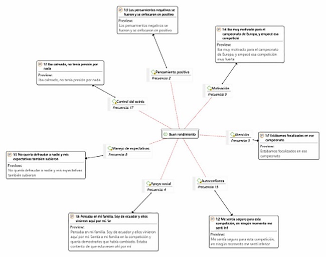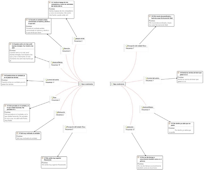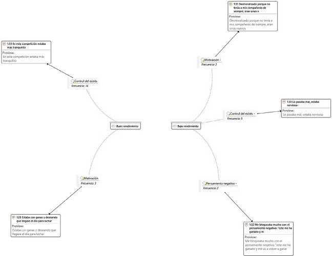 Las entrevistas fueron realizadas y revisadas por 3 jueces, todos ellos expertos en psicología del deporte y con amplia experiencia en entrenamiento psicológico con deportista. Tras dicha revisión se crean las citadas categorías para su posterior análisis de cara a la creación de las redes semánticas.