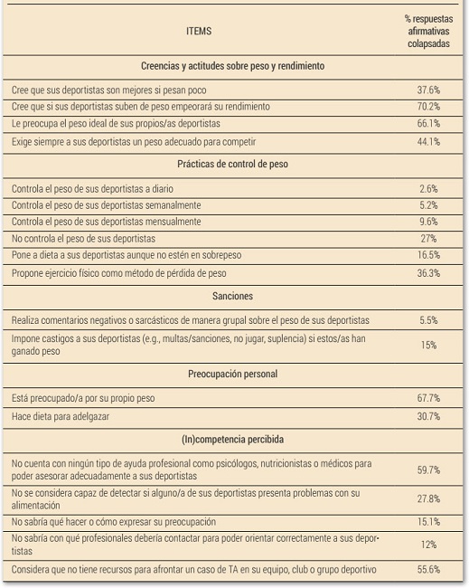 Creencias, actitudes y conductas de riesgo de entrenadores en relación con el peso de sus deportistas: un estudio descriptivo