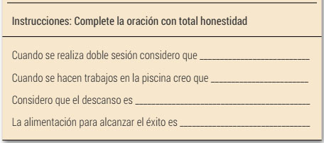 Con respecto al reflejo emocional, se conversó sobre las consecuencias no deseadas como: el miedo al fracaso, la inestabilidad del carácter, excitabilidad elevada, pérdida de concentración y tensión insuficiente. La última actividad realizada fue la implementación de una prueba de oraciones incompletas ad hoc. Los jugadores lo cumplimentaban de forma anónima. Se eligieron al azar un tercio del total de respuestas para leer en voz alta, y que el preparador físico, médico y psicólogo pudiera hacer una aclaración de las preocupaciones expuesto por el jugador en la prueba (ver Tabla 4).
