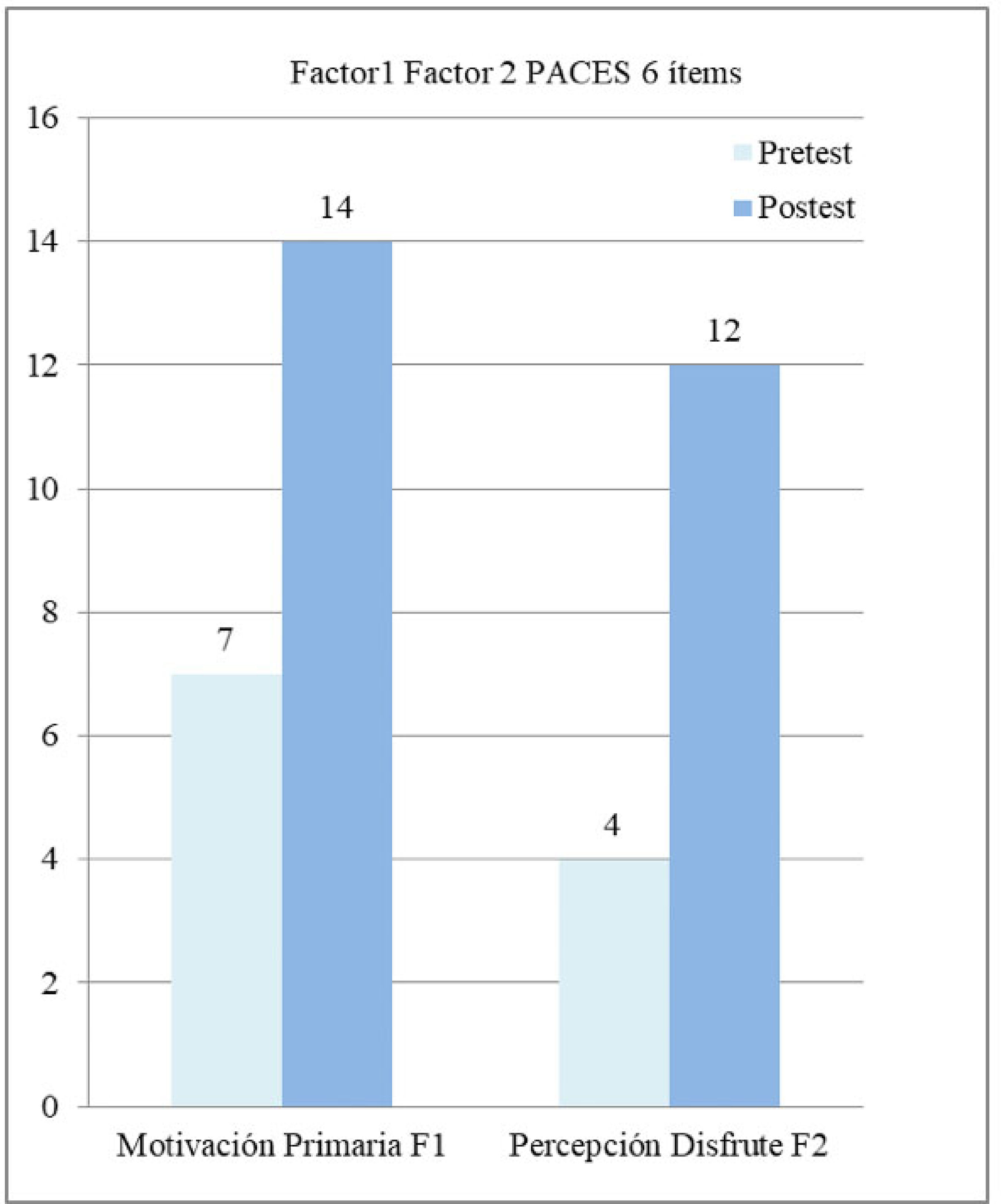 El disfrute se midió usando el cuestionario PACES (Physical Activity Enjoyment Scale) de Kendzierski y DeCarlo (1991), adaptado a población de chicas adolescentes españolas y validada por García et al. (2008) desarrollando una versión corta (6 ítems), que proporciona datos sobre dos factores: