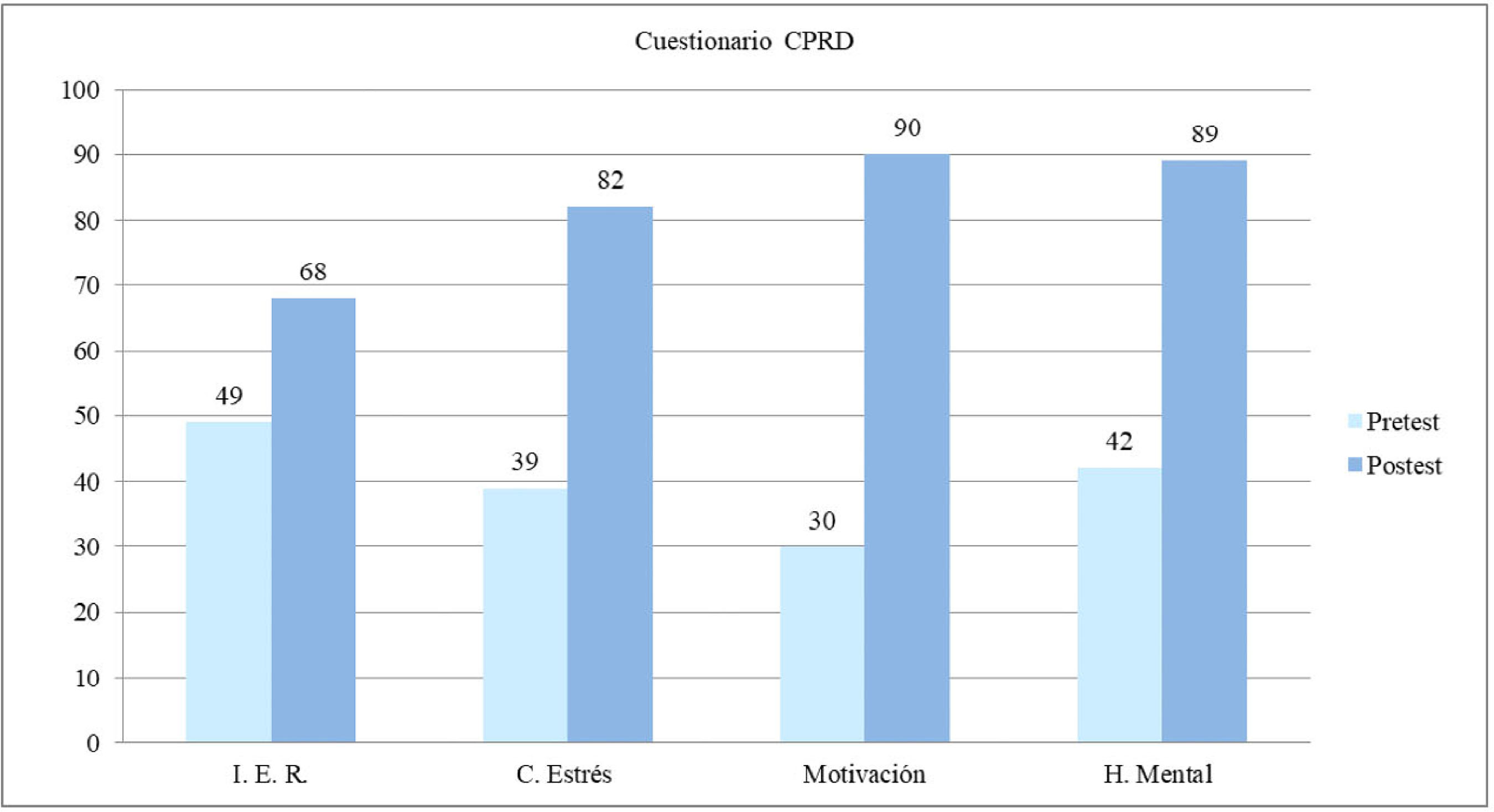 Los resultados de este estudio son compatibles con los resultados de otros estudios de caso, en los que se realiza una intervención psicológica con medición anterior y posterior del CPRD, como los realizados por Olmedilla y Domínguez (2016) y Peris (2020) en los que se detecta una clara mejoría en las puntuaciones del CPRD después de la intervención.
