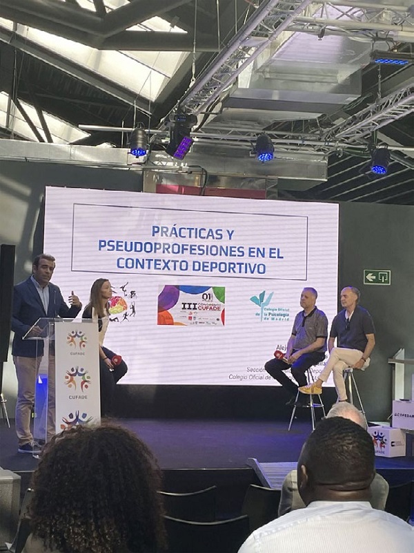 El 1 de junio de 2024, con la colaboración de la Unión de Federaciones Deportivas Madrileñas (UFEDEMA), la Sección de Psicología del Deporte a participado en III Congreso Nacional del Deporte Autonómico, organizado por CUFADE, el cual integra a todas las federaciones deportivas de España. Ante más de 150 asistentes en las instalaciones del Wizink Center de Madrid, y retrasmitido en directo a nivel nacional, los colegiados y miembros de la sección D. Alejo García-Naveira (coordinador), Dña. Ana de Cevallos (vocal) y Manuel Aguilar (vocal), junto a la presencia del decano del colegio D. Jose Antonio Luengo, impartieron la ponencia “Prácticas y pseudoprofesiones en el contexto deportivo”. Para más información ver: https://cufade.es/tercer-congreso-nacional-deporte-autonomico-madrid/