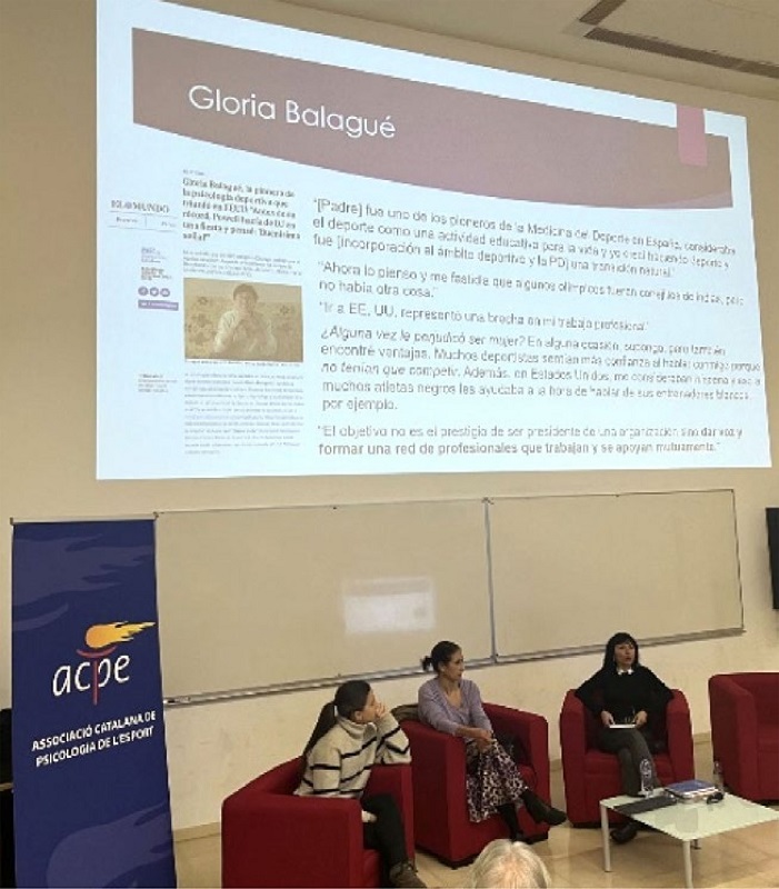 Sábado 3 de febrero de 2024, 9:30 horas: “Perspectivas de género en Psicología del Deporte. ¿Por qué y para qué?”, con la participación de Débora Godoy (Vocal FEPD. Presidenta APDA. Universidad de Granada), Madó González (Secretaria FEPD. Secretaria División de Psicología del Deporte del Consejo General de la Psicología de España) y Anna Jordana (Universitat Autònoma de Barcelona. EUSES Girona. Academia Real Madrid. UEM). Se debatió sobre algunos de los principales desafíos para la plena inclusión de las mujeres en nuestro ámbito; la igualdad de oportunidades y la formación especializada en perspectiva de género. Se hizo hincapié en diferentes aspectos como el manejo adecuado del síndrome del impostor, estrategias para la conciliación familiar y la maternidad, el desarrollo de la carrera profesional con igualdad de oportunidades o la importancia de tener buenos referentes femeninos, entre otras cuestiones.