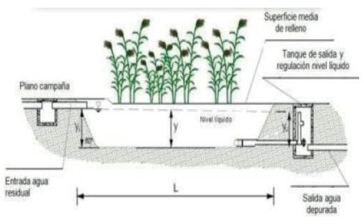 Jardinera o filtro horizontal. Una estructura rectangular en la cual se rellena con tezontle, material ligero de superficie porosa donde se fijan las bacterias que se nutren de las impurezas de las aguas grises y de jabones y detergentes (fig. 2). Sobre el tezontle se siembran plantas semiacuáticas como papiros, alcatraces, plantas de hojas grandes, que por medio de las raíces inyectan oxígeno, optimizando la filtración. Esta estrategia del sistema, coadyuva con la calidad de las aguas al final del proceso de descontaminación y contribuye con la mejora sustancial del líquido para la reutilización en los diversos usos, dándole un valor agregado al tratamiento en aras de innovar respecto a la huella hídrica gris de los habitantes de la zona del Alto Magdalena-Colombia.