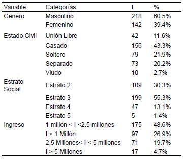 La Tabla 2, describe la frecuencia absoluta y relativa de la participación por cada una de las variables en las respuestas a las encuestas. De esta manera se destaca en su mayoría a la población masculina, con un 60.5%, la mayoría de estos encuestados 43,3%, son casados y asisten al humedal con sus parejas, el estrato 3 con el 55,3% es el de mayor asistencia al humedal, finalmente quienes ganan entre 1 millón y 2.5 millones, con un porcentaje del 48,6% se constituye en el grupo de mayor asistencia en los paseos y recorridos al interior del humedal.