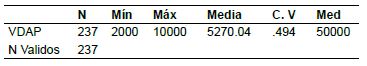 El coeficiente de variación que registra el 49,4% de variabilidad indica el valor inestable de la media, por lo que se recomienda considerar el valor de la mediana como un valor que registra estabilidad y se puede considerar como una disposición a pagar en la entrada al humedal. Dicho valor sería de $5000. ,Tabla 4.