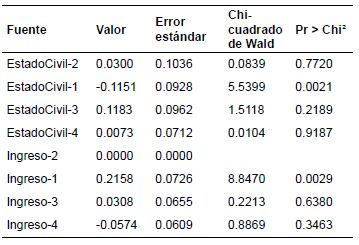 Como las variables, ingreso, estado civil, son politómica, se requiere indagar cuál de las categorías de la variables fue el que permitió que la incidencia en el modelo DAP. Para ello se construyen variables Dummy y se realiza nuevamente el logit. Los resultados se reflejan en la tabla 6.