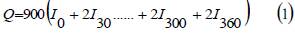 All information concerning Reagents, Materials, and Test Cell of the Rapid Chloride Permeability Test (RCPT) can be looked up at item 3. This test method consists of monitoring the amount of electrical current passed through 50-mm thick slices of 100mm nominal diameter cores or cylinders during a 6-hperiod. A potential difference of 60 V DC is maintained across the ends of the specimen, one of which is immersed in a sodium chloride solution, the other in a sodium hydroxide solution. The total charge passed, in coulombs, has been found to be related to the resistance of the specimen to chloride ion penetration according to [6], [7]. The total charge passed can be calculated based on the trapezoidal rule according to (1):