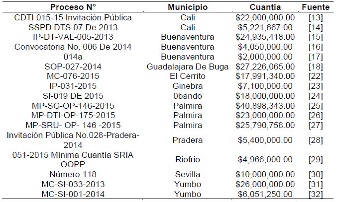 [15] Sistema Electrónico de Contratación Pública (SECOP I), "Proceso Número IP-DT-VAL-005-2013," 2013.