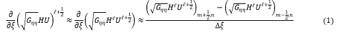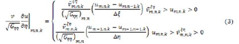 Para la presión barotrópica de aguas poco profundas, las ecuaciones 3D se resuelven mediante una factorización tipo ADI [17]. La ecuación de la continuidad (1) linealizada por los flujos del paso del tiempo, para términos que contienen la velocidad en el plano vertical. En la ecuación, ξ representa el componente en el plano horizontal,