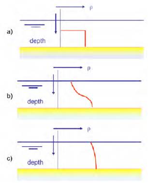 Los estuarios se pueden clasificar dependiendo de su forma, la influencia de la marea y del río, la geología, y la salinidad; esta última clasificación es de interés para el objetivo de esta investigación, según la cual los estuarios se clasifican en: i) estratificado, que ocurre cuando la descarga del río es mayor comparada con el flujo de la marea; ii) bien mezclado, cuando el flujo de la marea es mayor que la descarga del río; y iii) parcialmente mezclado, cuando ambas descargas son relativamente iguales, como se muestra en la Fig. 1 [4]. La determinación de la estratificación del ecosistema puede conllevar al desarrollo de nuevas tecnologías de generación de energía, como la energía a partir de gradiente salino (EGS), que puede ser obtenida de la mezcla de agua dulce del río y agua salada del mar en un ciclo hidrológico natural [1].