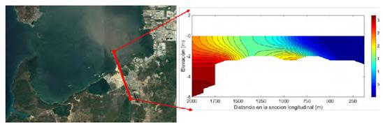 En la mayoría de los estudios se han analizado los patrones de dispersión del sedimento en la bahía, en uno de estos se determinó la relación que hay entre la dispersión de la turbidez en el agua y la distribución de la salinidad [11]. Sin embargo, este estudio se basa únicamente en la caracterización de la estratificación salina en la desembocadura del canal a la bahía, lo que se puede realizar mediante modelos numéricos que consisten en una solución, en espacio y tiempo, de ecuaciones hidrodinámicas y/o de transporte de materia, a partir de información sobre variables ya conocidas [2].