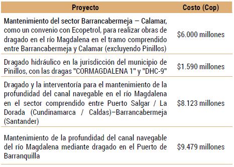Cormagdalena identificó como prioritario el tramo comprendido entre Puerto Salgar/La Dorada y Barrancabermeja, que cuenta con una extensión de 256 Km., para mejorar las condiciones de navegabilidad del río y así permitir el aprovechamiento del corredor para el transporte de carga del interior del país hacia el mar Caribe o viceversa (CONPES 3758). A continuación la descripción de las obras: