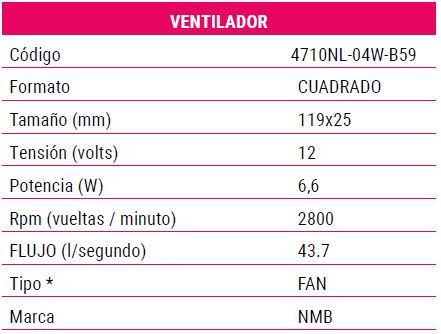 Las condiciones de funcionamiento trabajan con criterios distintos, por lo cual se genera un factor de conversión; al usar la tabla de datos de características del motor de cc del ventilador, esta nos muestra que la velocidad es de 2815 rpm, por lo que podemos determinar de forma lineal el flujo de aire que es transportado por el mismo.