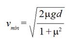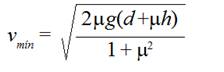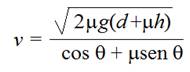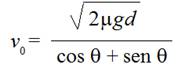 es el ángulo de salida del centro de gravedad del peatón, g es la gravedad (9.8 m/s2), d es la distancia de proyección en deslizamiento y m es el coeficiente de rozamiento.