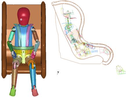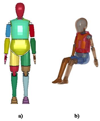 El maniquí Hybrid III percentil 50 masculino, es el maniquí para pruebas de impacto más utilizado a nivel global para la evaluación de los sistemas de seguridad en el automóvil y medir las fuerzas, momentos y aceleraciones que pueda interpretarse, en la medida de lesiones humanas que se experimentarían en condiciones de impacto (véase Fig. 8a). En términos técnicos se llaman "dispositivos de prueba antropomórficos". El modelo del maniquí en elementos finitos fue desarrollado por Livermore Software Technology Corporation (LSTC) en el año 2010 (véase Fig. 8a). El tamaño y peso del maniquí percentil 50 representa el promedio de la población adulta del sexo masculino en el continente americano. Para el infante, el maniquí fue desarrollado conjuntamente por Livermore Software Technology Corporation y el National Crash Analysis Center en el código de elementos finitos LS-DYNA (véase Fig. 8b), el cual está basado en el Hybrid III 6C (Versión Beta). Este modelo se ha validado para las pruebas de certificación que se describen en el Código de Regulaciones Federales, Título 49, Parte 572.