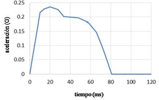 La gravedad impuesta se establece en dirección vertical con un sentido perpendicular, aplicado a todas las partes del sistema, siendo para los análisis realizados el eje y . El valor de la gravedad se introduce como una desaceleración en función del tiempo, en este caso toma el valor constante de 0.00981 mm/ms2.