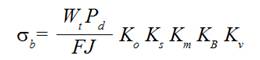 De los métodos más reconocidos para el análisis de esfuerzo flexionante en engranes rectos, se destaca el de la norma AGMA 2001-D04, el cual, presenta un método teórico para diseñar satisfactoriamente un sistema de engranaje de ejes paralelos aplicando una serie de factores adicionales de modificación al esfuerzo flexionante calculado en conjunto con la ecuación de Lewis modificada [9], dando como resultado una mejor estimación del valor real del esfuerzo que se produce en los dientes de los engranes [10]. La ecuación de Lewis considera como variables principales a la fuerza tangencial ( Wt ), el paso diametral ( Pd ), el ancho de la cara del diente ( F ) y el factor de forma de Lewis ( J ) que depende de la geometría del diente. Aunque ya no se aplica en su forma general, sirve como base para la propuesta definida en AGMA 2001-D04, cuya fórmula para calcular el esfuerzo de flexión en los dientes de un engrane recto es [8]:
