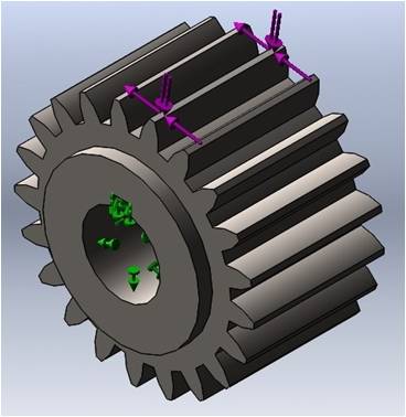 Para el desarrollo, se consideró la metodología de análisis propuesta por Carro et al., [8], en la cual, se aplican las restricciones en el soporte para el eje del engrane y se aplica la carga total en la cara superior del diente tal como lo propone Lewis [4], obteniendo como resultado final el esfuerzo de von Mises equivalente al teórico en el punto crítico.