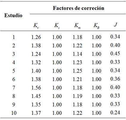 Finalmente, en la Tabla 3 se presentan los valores considerados para los factores de corrección con base en los criterios establecidos por la norma AGMA 2001-D04.