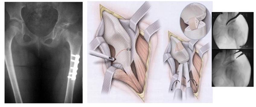 El manejo quirúrgico de la displasia del desarrollo de la cadera luxada es técnicamente demandante y existen varias opciones quirúrgicas que han demostrado buenos resultados: la reducción cerrada (fallo del arnés de Pavlik), reducción abierta y osteotomía de ilíaco (osteotomía de Salter) [5], [17], acetabuloplastía de Pemberton o Chiari, osteotomías cotilo (acetabuloplastias); Shelf, Degas, Ganz, Klisic [3], [7], [9], [12], [22].