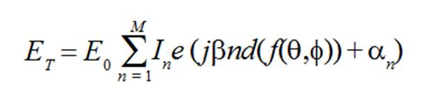 Una vez obtenidas las corrientes virtuales, se calcula el campo lejano usando la teoría de arreglos, bajo la consideración de que las corrientes calculadas representan un arreglo de elementos puntuales que generan ese campo lejano. El campo radiado por un arreglo de fuentes puntuales está dado por la ecuación (5):