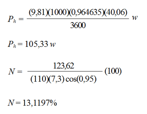 N: eficiencia de la bomba (%)