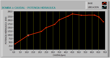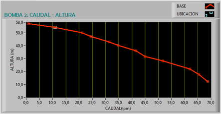 El Sistema SCADA tiene la capacidad de calcular y mostrar el punto de operación en tiempo real en el cual se está trabajando, y a través de las gráficas Caudal vs. Altura (véase Figs. 14, 15) es posible observar si dicho punto está dentro de los parámetros óptimos, de manera que al ubicarse el punto fuera de la gráfica indica que la bomba tiende a cavitar, es decir, que las condiciones de trabajo no son ideales, como consecuencia de esto la bomba hace un ruido característico seguido del calentamiento de la misma.